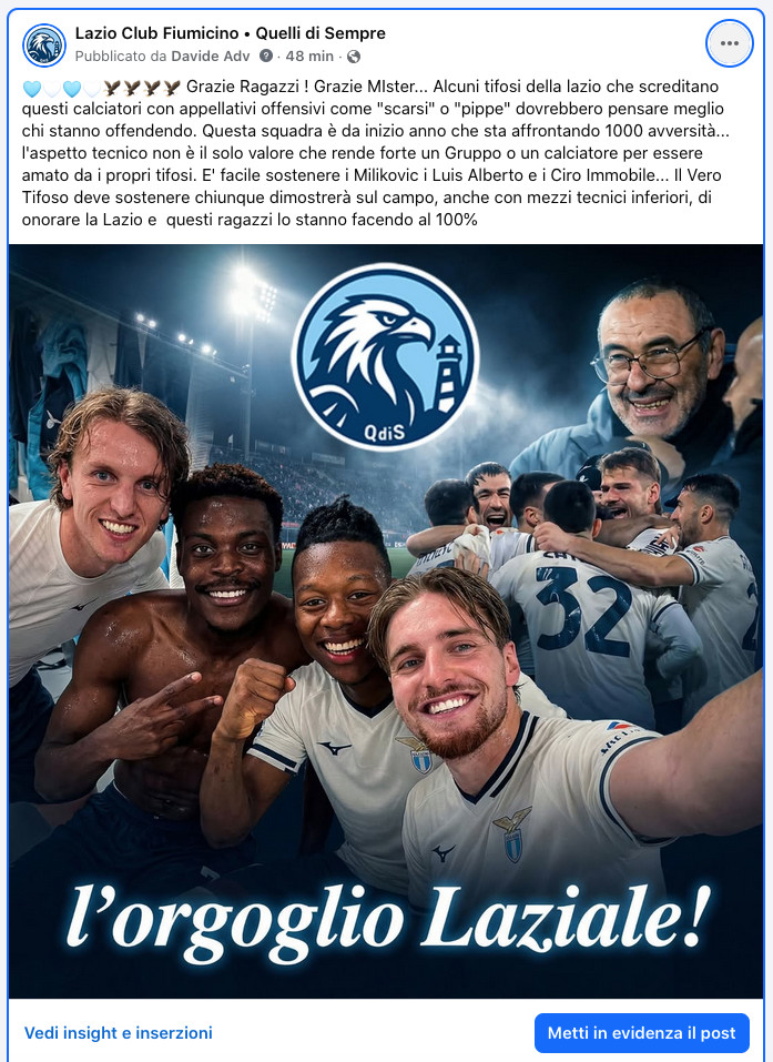 Ma noi siamo la Lazio, non molliamo mai! Nella ripresa i ragazzi rientrano in campo con un altro piglio e ci pensa lui, l’uomo della Coppa Italia: NOSLIN! Servito alla perfezione da Dele-Bashiru, il nostro attaccante gela Skorupski e fa esplodere il settore ospiti per l’1-1.