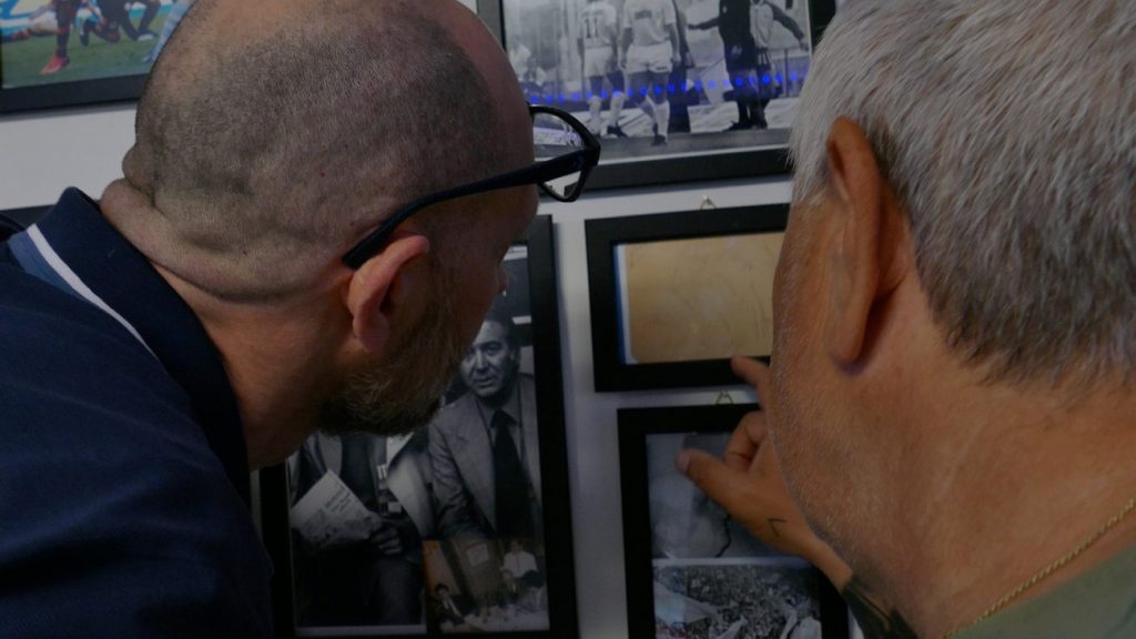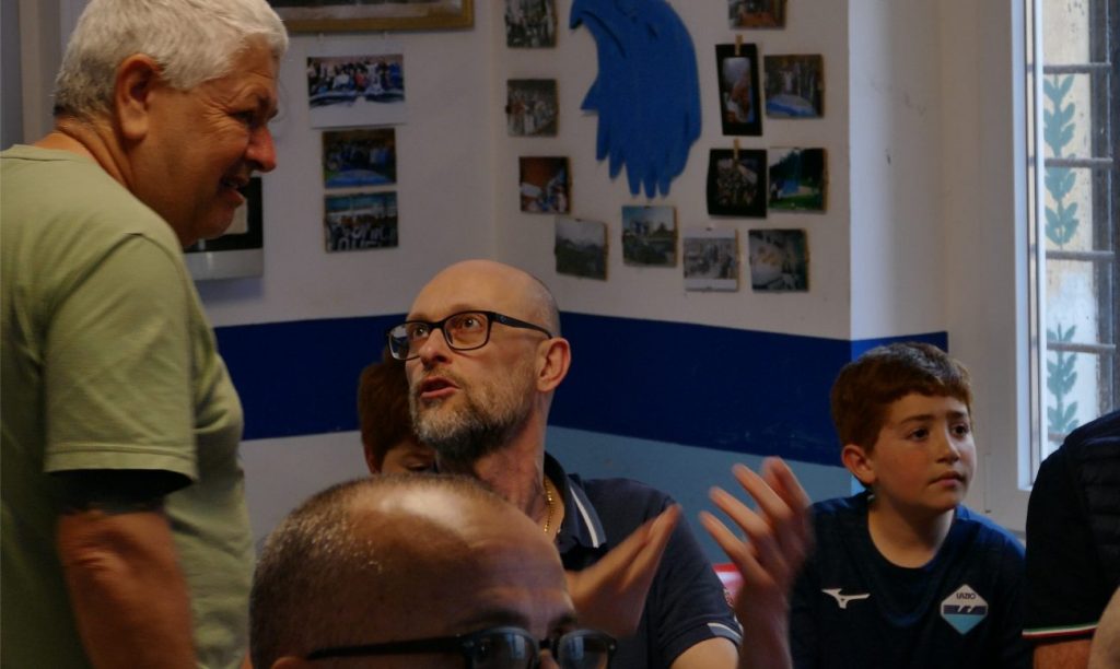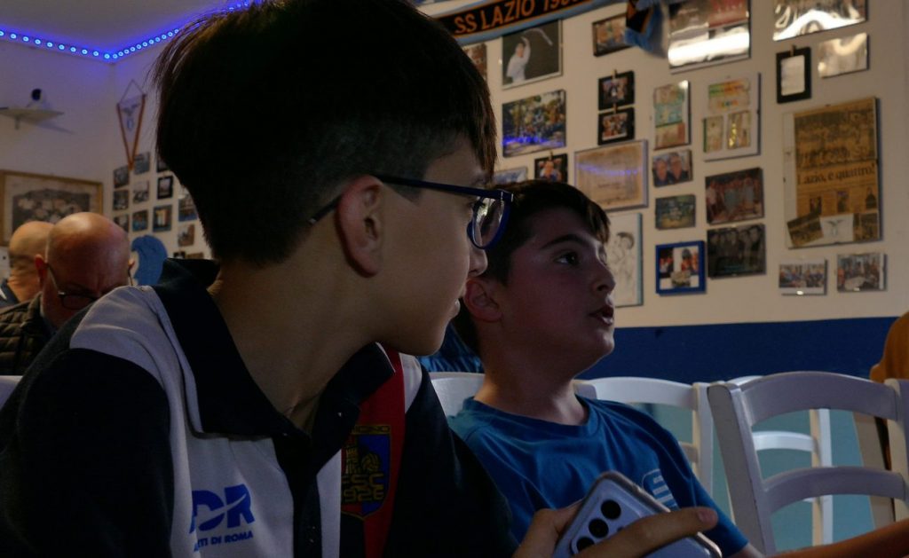L’emozione è iniziata alle 17:40, quando i nostri graditi ospiti hanno varcato la soglia. Ad accoglierli, il Direttivo al completo guidato dal nostro Presidente Andrea Antonini. Tra le mura della nostra sede, tra cimeli e bandiere, abbiamo respirato l’aria del Primo Scudetto. Andrea e Gino hanno fatto gli onori di casa mostrando la sede e i suoi cimeli, ma sono stati i racconti, gli aneddoti inediti e quel filo invisibile che ci lega ai loro immensi papà a rendere l’atmosfera magica. Strette di mano sincere, risate e una disponibilità infinita: James, Gabriele e Matteo si sono prestati a foto e sorrisi con tutti, dimostrando che la “Lazialità” è davvero un fattore ereditario di signorilità.
